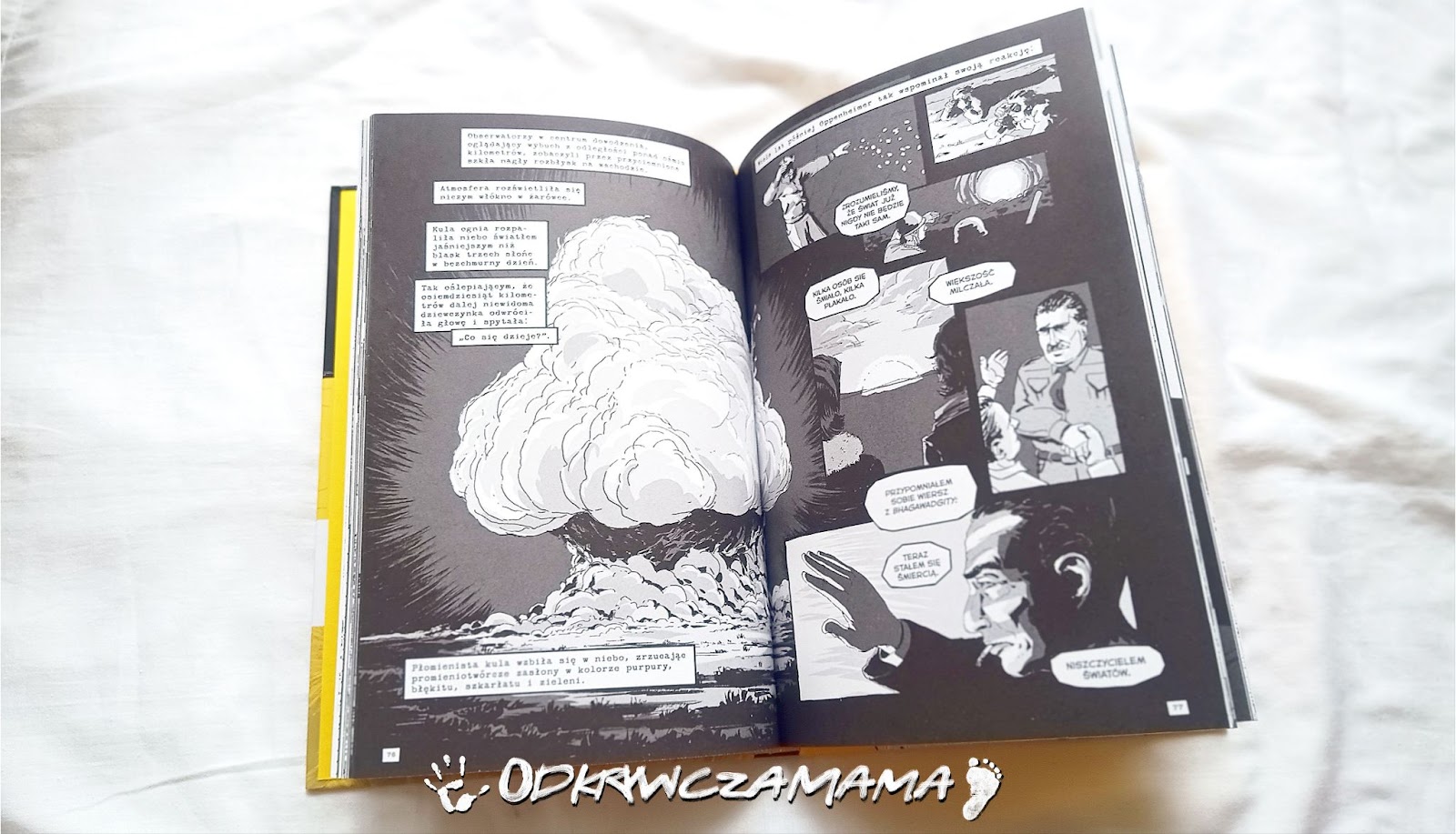 Czytając komiks, chwilami przypominałam sobie kadry z filmu "Oppenheimer", który zrobił na mnie ogromne wrażenie, a jednak "Trinity" poraził mnie intensywnością i stylem, którego nie znajdę w filmie. Autor prowadzi narrację w taki sposób, że emocje rodzą się w czytelniku same, a nie są wynikiem interpretacji twórcy.